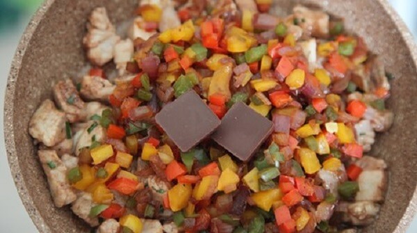 Ajoutez les légumes réservés et deux carrés de chocolat noir. Mélangez doucement et laissez refroidir.